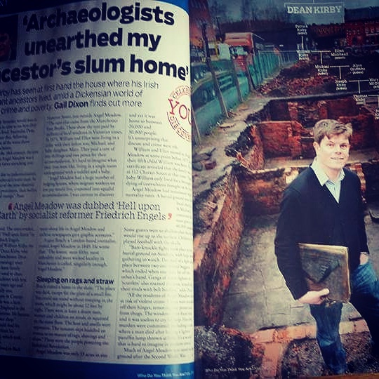 Angel Meadow has had some fantastic coverage today with a four-page spread in the latest edition of Who Do You Are? magazine. It tells the story of how archaeologists discovered the home of my Victorian ancestor in the slum.